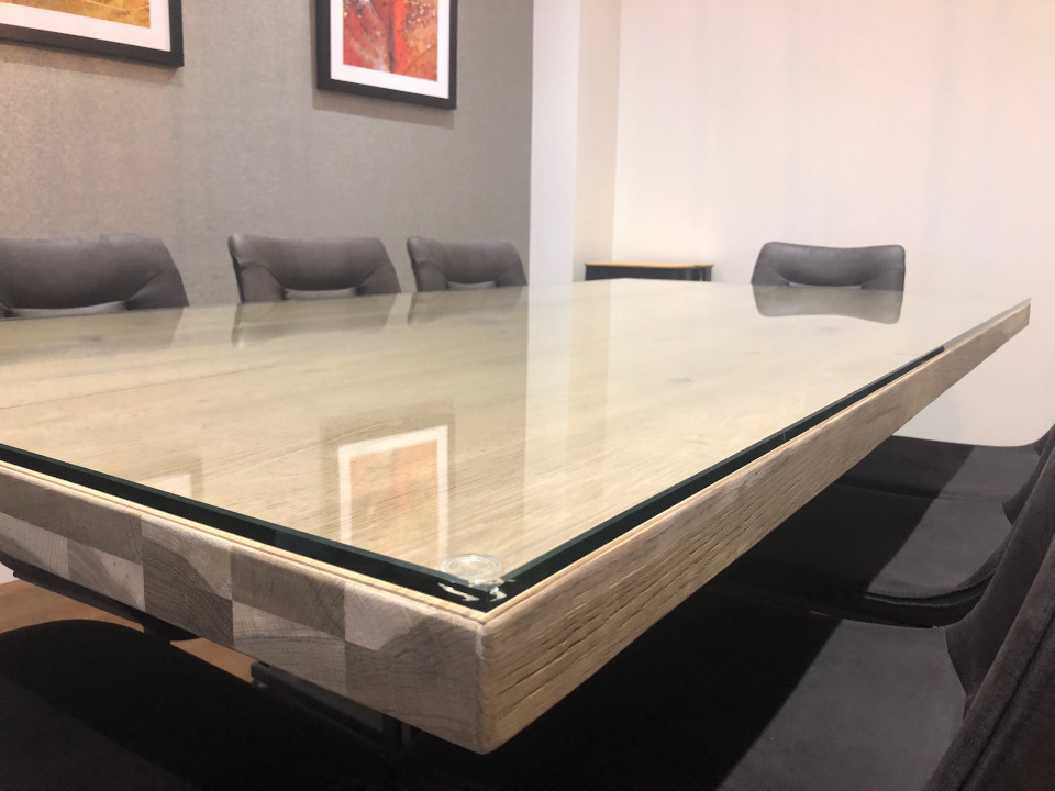 We can custom-design tabletops using a variety of patterns, glass thicknesses and edgework.