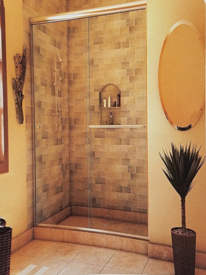The Serenity Series Sliding System has an entirely different look from traditional sliding systems. The use of minimal hardware provides a frameless look that gives the enclosure an almost floating appearance. Specially designed roller bearings allow for quiet and easy opening and closing of the door. One sliding panel and one fixed panel make the Deluxe Serenity Series both practical and beautiful.